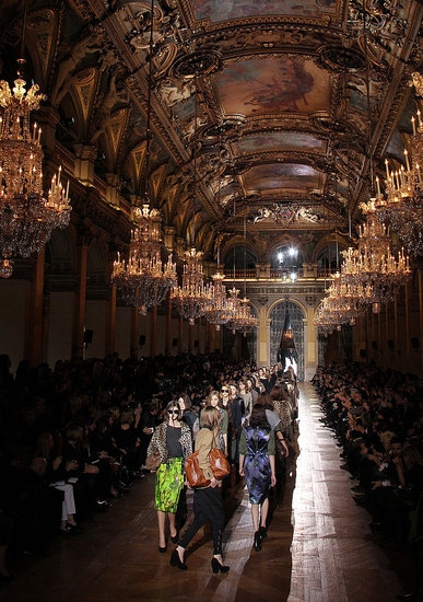 L'ensemble de ces données se mêle alors sur une même silhouette, élaborant des tenues d'une évidence déconcertante. Là est d'ailleurs toute la magie du show Dries Van Noten : situé sous les lustres de l'Hôtel de Ville, le catwalk infiniment long procure au public l'impression d'observer de nonchalantes passantes au naturel paradoxalement sophistiqué.