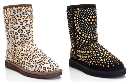 Et le constat est sévère : la Ugg n'a pas évolué d'un iota, ses volumes peu flatteurs sont restés intacts ; à vrai dire, seule son accessoirisation bling bling rappelle la présence de Jimmy Choo. Qu'elles soient piquées de multiples clous dorés ou d'étoiles argentées, munies de franges très Minnetonkas ou imprimées de motifs léopards ou zébrés, les Uggs by Jimmy Choo flirtent ainsi sans complexe avec le mauvais goût.