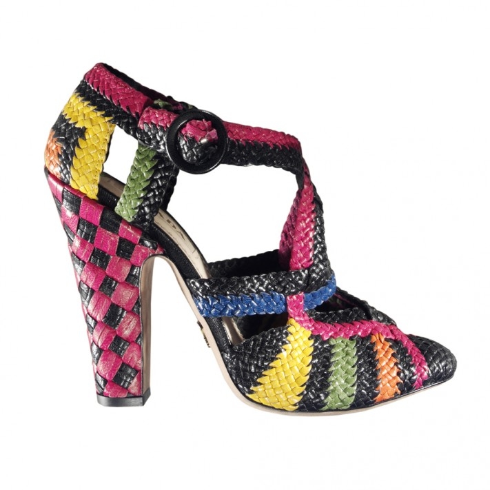 Cela dit, que les Prada's addicts se rassurent : les sandales rétro en cuir tressé multicolore - voir ici et là - côtoyant ces inénarrables compensées sont quant à elles absolument parfaites...