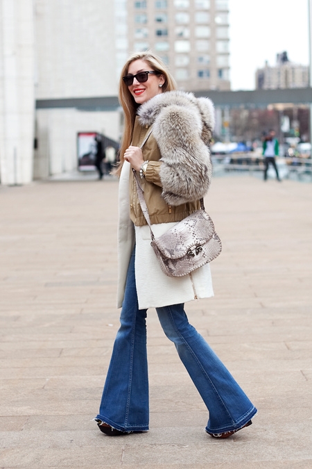 pour moi il y a deux types de jean pattes d'eph, celui qui est coupé comme un pantalon dont la jambe s'élargie peu à peu (je l'ai aussi toujours porté - et je pense que c'est le cas du MIH) et celui qui est plutôt serré jusqu'aux genoux et s'élargi après (la bonde en fourrure, sur les photos). je pense que celui ci est plus difficile, mais quand il est bien coupé et seillant: c'est vraiment cool!