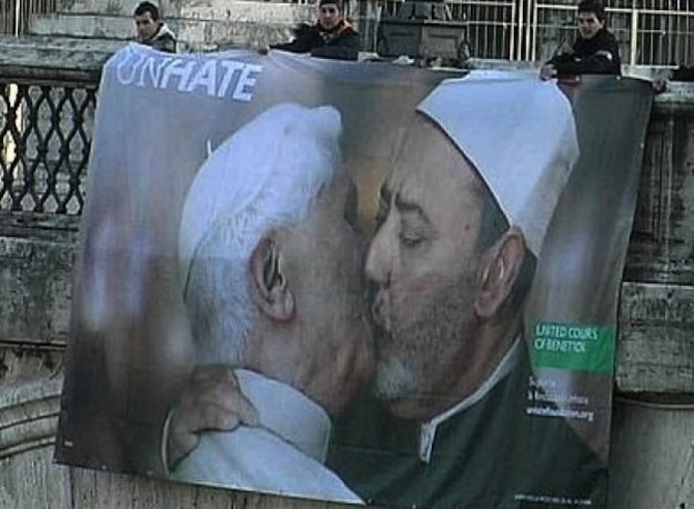 Plutôt sympa c'est vrai, pour ma part je ne trouve pas la photo avec le pape particulièrement choquante (pourtant je suis catholique). Ils s'embrassent, et alors ? Dans pleins de pays dont les etats unis et la russie certaines familles s'embrassent entre eux donc bon...