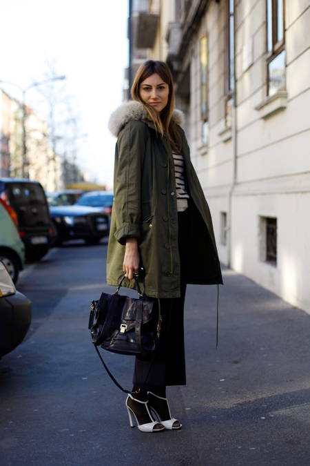 Alors qu'à la sortie des défilés masculins automne/hiver 2012-2013, nombreux furent les hommes à arborer canadienne et veste en tweed, c'est sur l'iconique parka kaki que les rédactrices de mode et autres professionnelles du style jetèrent récemment leur dévolu. Plébiscitée aussi bien par Anna Dello Russo que par la sublime Giorgia Tordini, celle-ci affiche ainsi aujourd'hui une incontestable aura hype.
