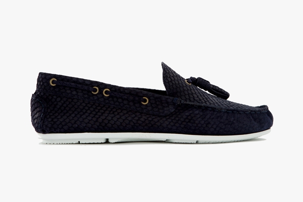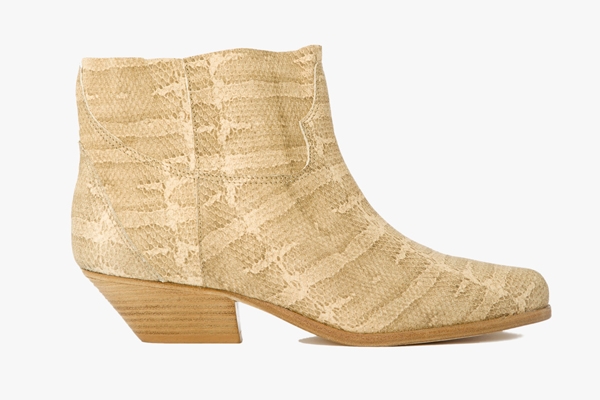On note ainsi au sein de l'opus de saison la présence des fameuses sandales sportswear vues aussi bien chez Phillip Lim que chez Christopher Kane (qui gagnent ici en désirabilité au contact de sangles en écailles de poisson), d'ankle boots à talons biseautés (dont l'ADN boho roots n'a rien à envier à celui du modèle Isabel Marant), mais également de slippers et autres mocassins se voyant dynamisés au contact de cuirs d'ovipares.