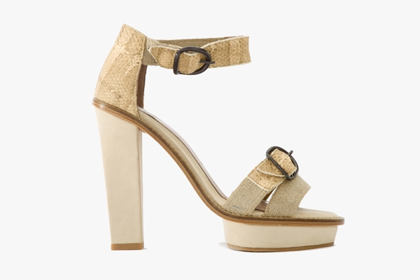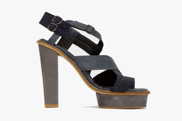 Et si la hauteur atteinte par certaines des sandales du cru 2012 peut parfois sembler quelque peu osée, les larges et sobres sangles de ces dernières - alliant aussi bien cuir bleuté et écailles que cuir de poissons et ruban gros grain - apaisent immédiatement l'ensemble.