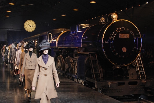 Pour l'automne/hiver 2012-2013, le créateur n'a ainsi pas hésité à faire surgir ses mannequins d'une locomotive fumante, stationnée sur un quai de gare du début du siècle dernier. Excentriques et mystérieuses, ces élégantes de la Belle Époque se virent alors prises en charge par les employés des chemins de fer Louis Vuitton, chargés de les délester de leurs innombrables bagages...
