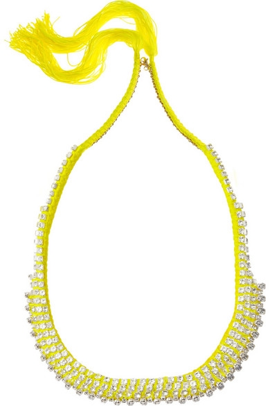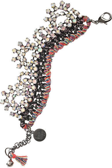 Rien de plus chic en effet en ce début de printemps que d'associer le luxe ostentatoire de quelques pierreries précieuses à la casualness de tressages très Do It Yourself. À l'instar d'Anna Dello Russo (qui dédramatisa récemment l'aura sérieuse de sa tenue en accumulant moult bracelets Shourouk), on n'hésitera ainsi pas à dynamiser l'ADN épuré de nos pièces COS, Acne ou encore APC au contact de ces bracelets très "bijoux de la couronne revus et corrigés en mode fluokids".