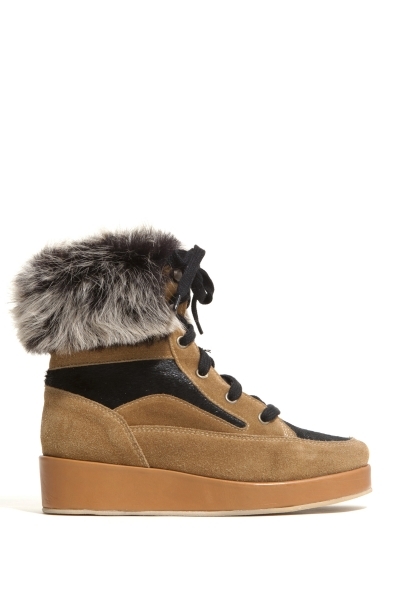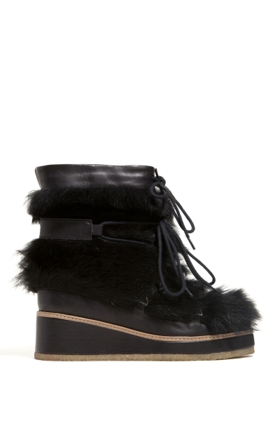 Rattrapée par la mode des compensées trompe-l'oeil, Dorothée Loermann imagine cette saison une poignée de boots reprenant le fameux gimmick des sneakers Isabel Marant. C'est ainsi que les Alley Ankle optent pour un design très "Chelsea Boots", tandis que les Alley Moon Boots concurrencent la Ugg sur ses terres en alliant confort de la botte fourrée et dégaine urbaine de la compensée.