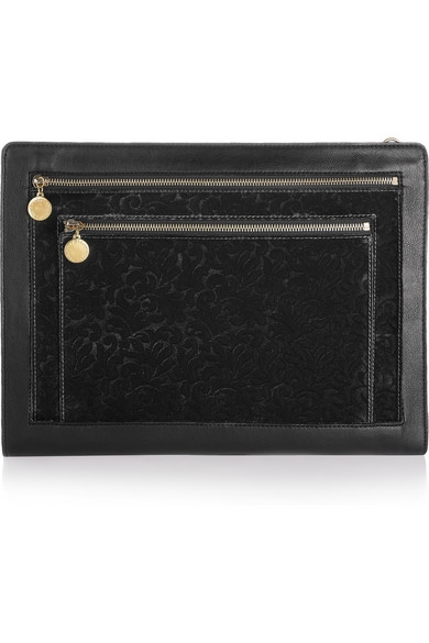 Associant un opulent lainage délicieusement régressif à une pochette/porte-document en croco pour working girl stricte, celle-ci compose en effet un duo savoureux où les deux éléments principaux s'équilibrent mutuellement, l'un apaisant l'aura sévère de ladite pochette, l'autre insufflant une touche de sérieux à l'aspect doudou du pull-over oversize.