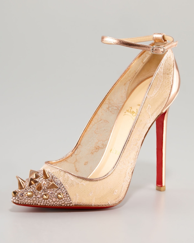 Du cocktail de début de soirée à la piste de danse, ces Louboutins apparaissent en effet toujours utra pertinents, entre dentelle poudrée semi-transparente allongeant la jambe et studs dorés/brillants incrustés à l'extrémité, qui sont comme autant de petits bijoux pour les pieds...