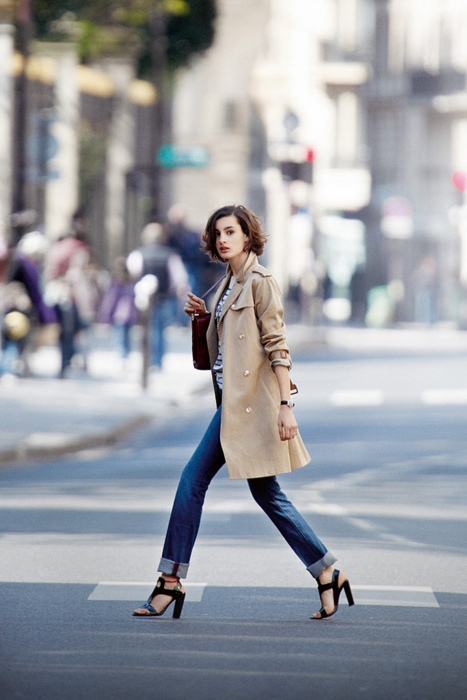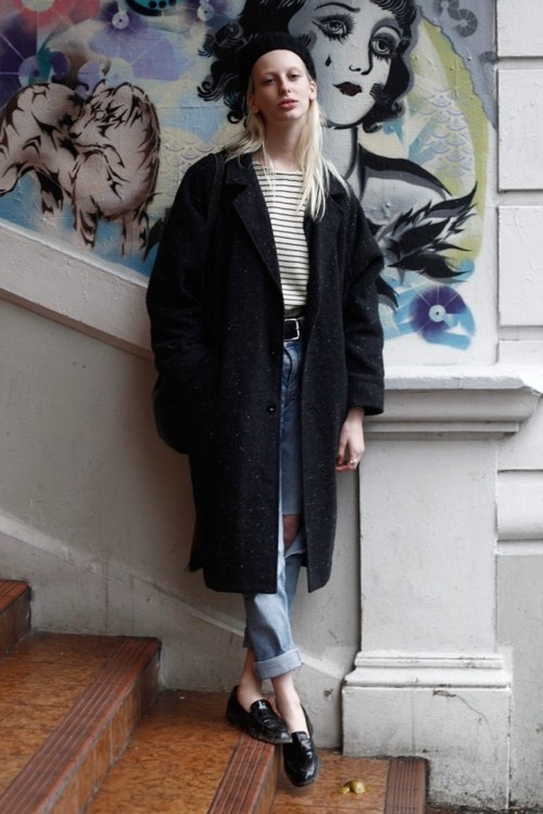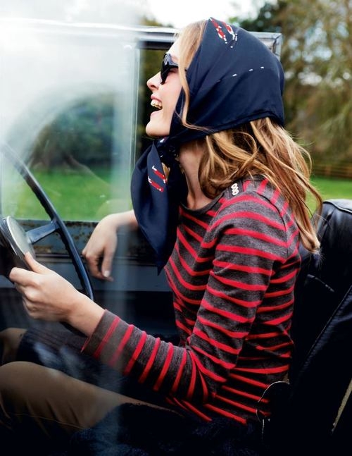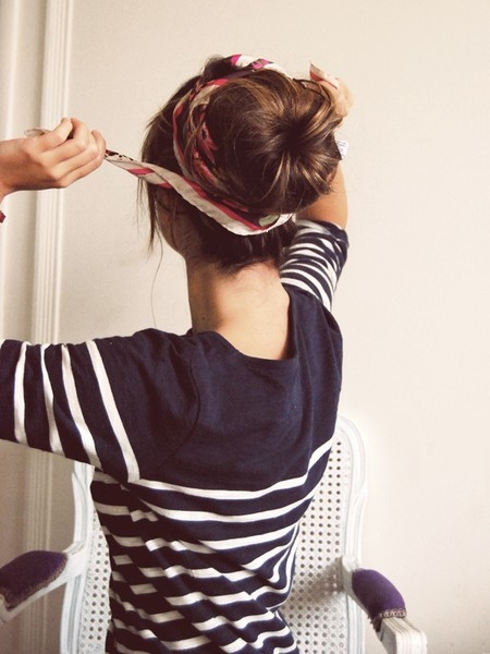 La marinière verra son aura rétro flattée par le port d'un foulard coloré noué dans les cheveux (voir ici et là) ou d'un bandeau Elle se mariera parfaitement au tombé classique et intemporel du trench camel (voir ici et là) Elle s'insèrera à merveille au sein de la tendance mix and match d'imprimés en s'associant à une chemise vichy (voir ici et là) Sa désinvolture apaisera avec subtilité les pièces à reflets métallisés Conjuguée en mode cropped (voir ici et là), elle gagnera en dimension "up-to-date" (on boudera cependant les pièces étroites au profit de modèles loose floutant le ventre) Au rayon lunettes de soleil, ce sont les modèles de type Wayfarer que la marinière préfère Elle se fera finement rock en participant au look maxi gilet noir/jean destroyed roulotté sur la cheville/mocassins noirs cloutés