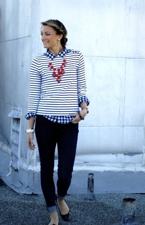 Tiens, ça me donne envie de ressortir mes rayures. J'aime particulièrement la marinière associée aux carreaux et à des pièces kaki ou vert forêt.