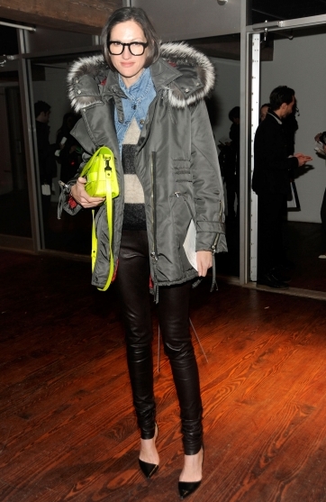 Faire monter en grade la marinière en lui associant des textures haut de gamme telles que la fourrure, le cuir ou les paillettes (voir ici, ici et là) Atténuer l'effet satiné d'un pantalon chic en le réchauffant d'une maxi parka inuit Porter systématiquement sur les épaules ses pardessus et autres manteaux Superposer pardessus et blazer Réveiller l'ensemble pardessus camel/chemise blanche/pantalon de tailleur par le biais d'une paire d'escarpins métallisés Casualiser une longue et étroite jupe de cocktail par l'intermédiaire d'une veste en jean étriquée