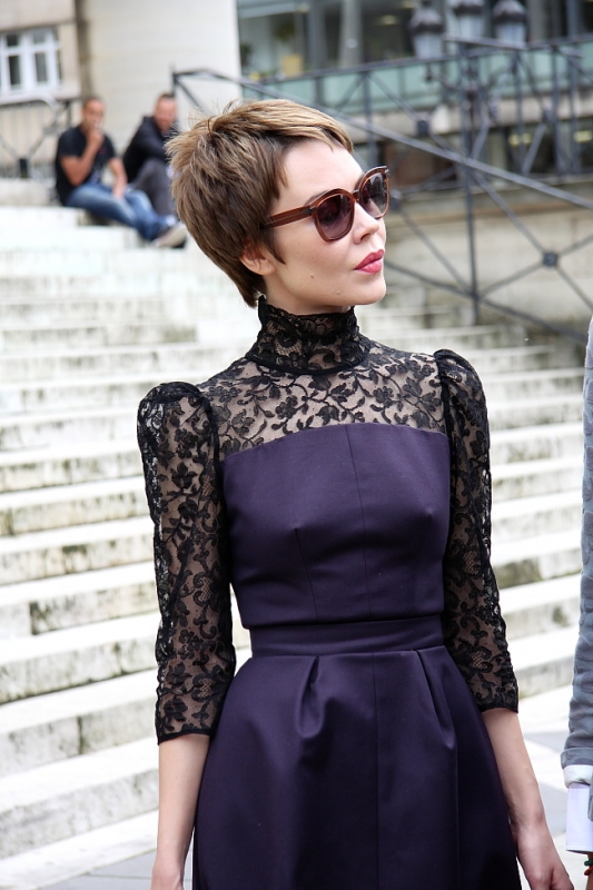 J'aime beaucoup cette coupe courte sur elle. Ça dédramatise son allure et la rend un peu plus contemporaine.