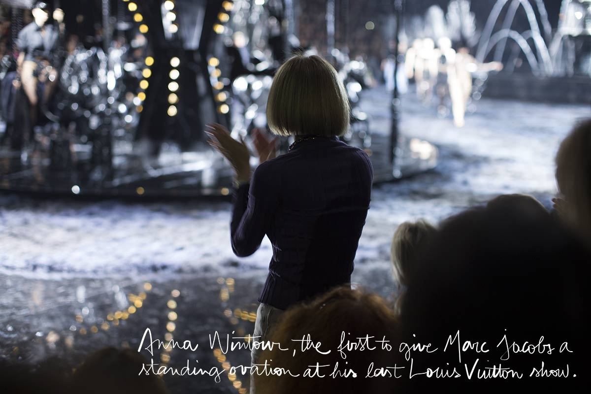 À l'instar d'Anna Wintour (qui fut la première à se lever pour applaudir à la fin du show), c'est un profond sentiment de reconnaissance qui m'envahit à la vue de cette dernière collection Louis Vuitton by Marc Jacobs. Difficile en effet de résister à l'envie de remercier le créateur pour l'audace, l'insolence, la folie, la liberté et la magie qu'il parvint à insuffler à l'excellence Louis Vuitton. Et si certaines de ses créations et de ses partis pris artistiques ne firent pas l'unanimité (voire prêtèrent à controverses), Marc Jacobs n'en restera pas moins à l'origine d'un pan entier de l'histoire de la mode contemporaine.