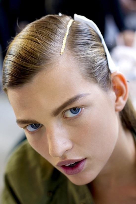 Et si les sourcils illuminés à la feuille d'or (Jean Charles de Castelbajac) et les raies de cheveux soulignées d'un trait doré (Dries Van Noten) gagneront à rester cantonnés aux pages des magazines, les nuances dorées sont quant à elles appelées à investir nos palettes de maquillage.