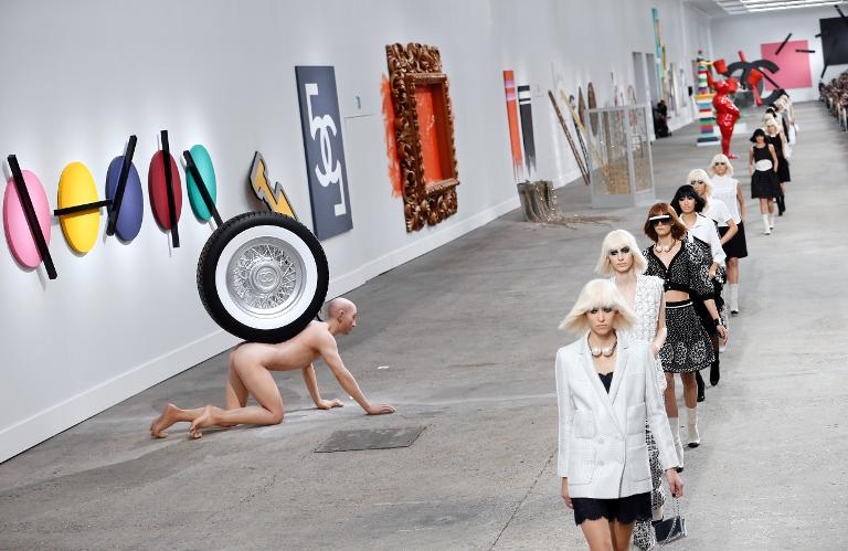À 70 ans passés, Karl Lagerfeld peut se targuer d'être plus que jamais en osmose avec l'air du temps. En faisant défiler les mannequins du dernier défilé Chanel au milieu d'une poignée d'oeuvres singeant les productions de Jeff Koons et consorts, le DA de la griffe au Camélia critique en effet gentiment le monde de l'art contemporain ; une posture actuellement très en vogue, à en croire l'extraordinaire médiatisation des dernières facéties de l'artiste contestataire Banksy.