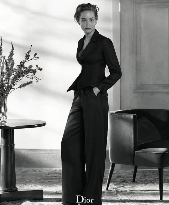Sinon, comme Coco, je la trouve très belle en tailleur pantalon épuré dans le magazine Dior... et moins en robe grise transparente.