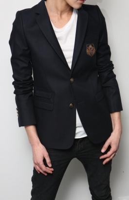 Je pense que l'écusson rendra aussi bien sur les deux ;) Pour un look plutôt preppy tu peux opter pour le blazer, pour un look plus rock tu peux opter pour la veste en jean.
