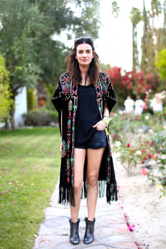 Prenant le contrepied de la débauche de couleurs liée à l'arrivée des beaux jours, les monochromes carbones tirent leur épingle du jeu. Il faut dire que leur radicalité chromatique leur permet de s'approprier des pièces folk - voir ici et là - sans jamais tomber dans la caricature. On pense notamment au mix short en jean taille haute/boots/marcel/veste de kimono.
