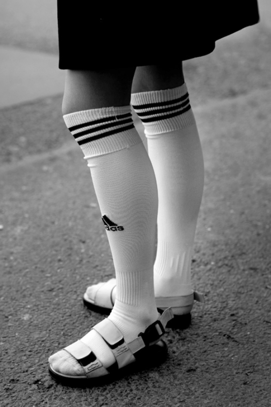 Hormis la photo de Soo Joo (qui malheureusement ne porte pas de chaussettes dans ses chaussures), je ne suis convaincue par aucune des photos presentant ce gimmick. La fashionista avec sa chaussette Nike est juste ridicule car, elle est persuadée d'être trendy et d'avoir un style à en couper le souffle. Ca ne marche pas.