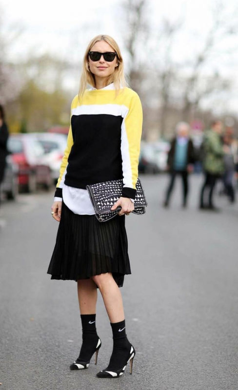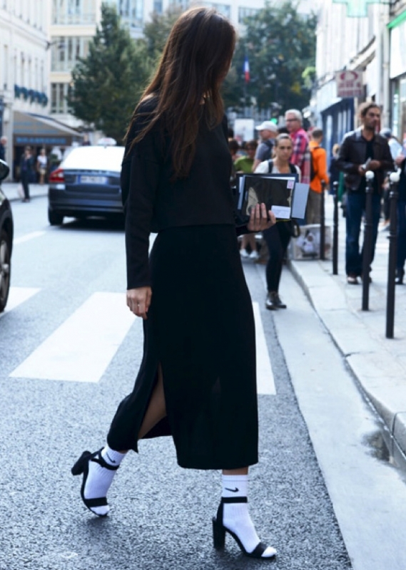 Si le mix "chaussettes + escarpins" ne fait pas figure de nouveauté au sein du fashion cosmos, son plébiscite sur les podiums Chanel, Saint Laurent et Prada du printemps/été 2014 l'a néanmoins récemment propulsé au rang de gimmick incontournable.