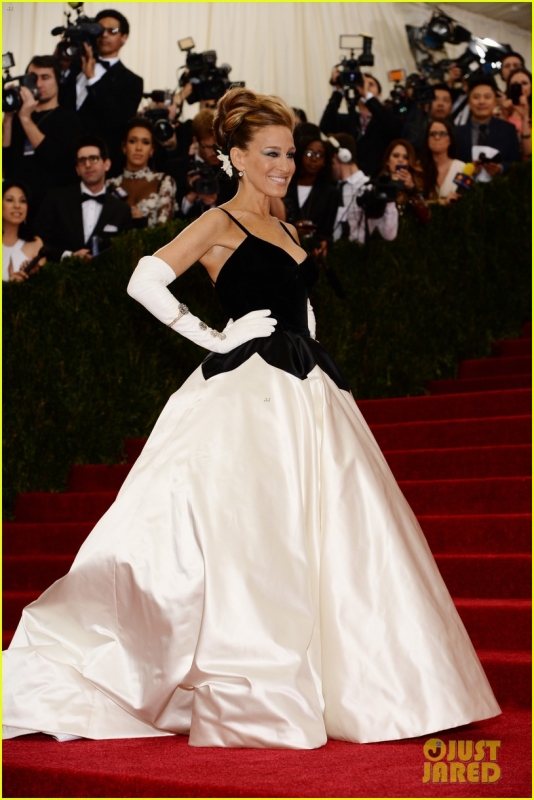 Comme l'on pouvait s'y attendre (au vu du thème de la nouvelle exposition du MET), nombreuses furent celles qui jetèrent leur dévolu sur d'opulentes robes. Un exercice de style périlleux que certaines relevèrent néanmoins avec brio. On pense notamment à l'actrice Maggie Q et à sa tenue ébène Zac Posen mêlant allure hiératique, texture ajourée et détails de coupe modernes, à Karolina Kurkova, qui apparut sublime et parfaitement à son aise dans une magistrale robe Marchesa, ou encore à Zoe Saldana et sa robe Michael Kors, qui fit honneur à l'une des coupes chères à Charles James tout en réussissant - via un large dos nu - à conserver une allure contemporaine. Sans oublier Dakota Johnson et Sarah Jessica Parker, qui eurent la bonne idée de jeter leur dévolu sur des toilettes équilibrant l'ampleur de leur jupon par des tops sobres et très décolletés.