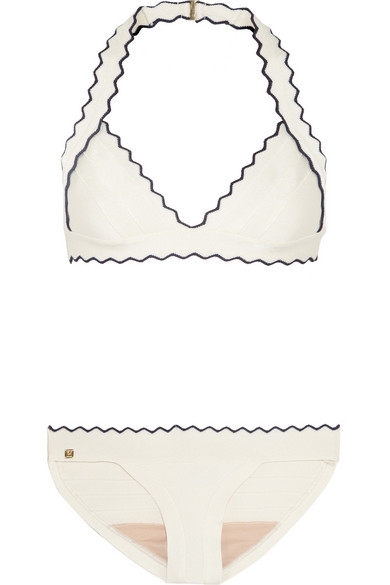 Dans la pratique, il nous suffira de les accompagner d'une ample chemise en chambray et d'une paire de Wayfarers ou d'un short en coton un peu trop grand (dont on roulottera le haut sur la taille) et d'un panama en paille pour insuffler à notre silhouette une dégaine plus Audrey Hepburn que J-Lo. De quoi pallier un brin la frustration générée par l'inaccessibilité des sublimes - mais hors de prix - bikinis Hervé Léger (voir ici et là)...