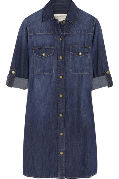 Déclinaison estivale de la chemise en denim, la robe-chemise en jean fait partie des basiques incontournables du moment. Mêlant simplicité et matière unisexe, elle apparaît en effet comme une parfaite alternative boyish à la sensualité des actuelles nuisettes de ville (il est vrai qu'avec son col et ses longues manches, celle-ci ne se laisse pas cannibaliser par les tendances cropped et lingerie).