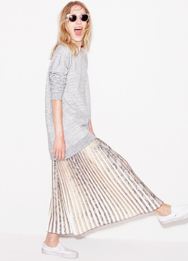 Placé tout en haut de ma pile de magazines "September Issue", "Porter" - le bimestriel lancé en 2014 par le site Net-a-porter.com - me fait de l'oeil. Assez sceptique au départ, je découvre au fil des pages un glossy assez bien réalisé. Et si la maquette pourrait être plus moderne et les séries mode plus inspirantes, j'apprécie la densité des articles ainsi que la place accordée aux portraits de femmes. Une des photos publiées au sein de notre section brèves fait débat. Il s'agit d'un cliché mettant en exergue cette fameuse silhouette "pull long/jupe 7/8/chaussures plates" qui commence à faire école au coeur des magazines et auprès des trend-setteuses. Au départ dubitative (lorsque je l'aperçus en février dernier chez Tommy Ton), je me surprends à en apprécier la fausse humilité. À suivre…