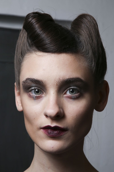 Inspiré des années 40, le faux bob du défilé Dries Van Noten est un véritable petit bijou de romantisme désinvolte. Pour réussir à obtenir cet effet lâche - mais maintenu - à la sophistication froissée, on tresse la nuque afin d'obtenir un maillage capillaire permettant d'y épingler la chevelure précédemment texturisée et séparée en deux parties le long d'une raie sur le côté. L'une des parties sera ensuite bouclée au fer, tandis que l'autre sera maintenue derrière l'oreille via une longue barrette métallisée.