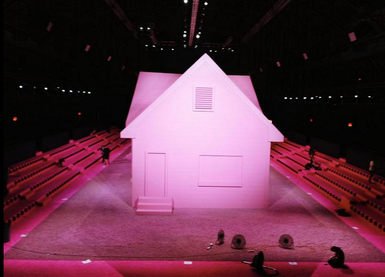 Une immense maison rose, dont l'unique raison d'être serait - dixit Marc Jacobs - de conférer au show une dimension joyeuse.