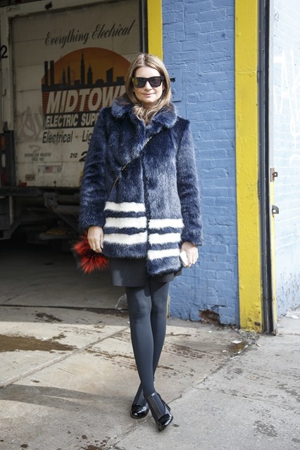 Contrairement à ce que l'on pourrait penser, la jeune femme de 24 ans n'a rien d'une farouche militante de chez PETA : le choix de la fausse fourrure correspond ici avant tout à un besoin de pragmatisme et d'esthétisme. Il faut dire que sa fausse fourrure - qui utilise un mélange de modacrylique plutôt que du polyester pur - affiche une exceptionnelle qualité, entre douceur, brillance et capacité à conserver l'intensité des teintures. Ajoutez à cela un zeste de nostalgie, une bonne dose d'espièglerie ainsi que l'envie très moderne de télescoper les genres et vous obtiendrez des manteaux ultra doux au pelage rayé que n'auraient certainement pas renié Margot Tenenbaum et Mary Quant...