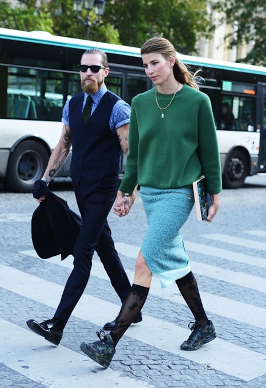 Formant avec son fiancé Justin O'Shea - directeur des achats du site Mytheresa - l'un des couples fétiches des photographes street-style, Veronika Heilbrunner - rédactrice de mode pour le Harper's Bazaar allemand - assume un style plus personnel que trendy, entre confort, fantaisie et choix pointus...