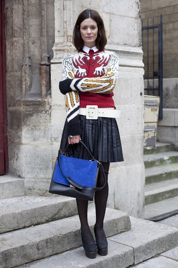 Avec son manteau esprit "Margot Tenenbaum" et sa robe désuète à fleurettes vintage (qu'elle twiste au contact d'une ceinture "blanc signalisation" et de bottines raccord), la femme Givenchy tient son look de demi-saison. Et nous inspire par la même occasion un gimmick susceptible de dérider fourrure friperie et robe fleurie : la ceinture large monochrome et flashy portée taille haute.