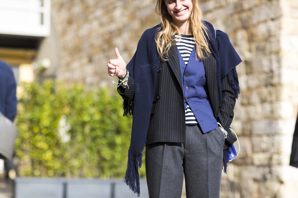 Boutonné juste sur le haut, l'anorak rétro accompagnera dignement bon nombre de tenues chics. Le look "mafioso" fait école chez la gent fashion (voir ici, ici et là). Décliné en gris, le blouson teddy gagne en intemporalité. Afin de twister leur tenue masculine, certaines osent le duo chaussettes/sandales ton sur ton... Le sac banane gagne en désirabilité. Le foulard noué en turban permet d'injecter ce qu'il faut de féminité à un look masculin. Le duo blazer/sous-pull devient incontournable. Les jupes midi apprécient de se voir associer un manteau ceinturé taille haute.
