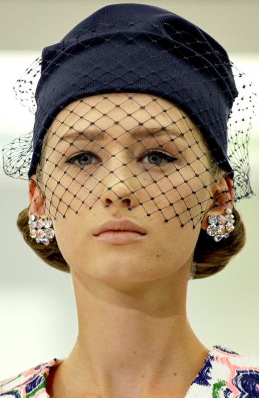 Après les créations minimalistes de Raf Simons (qui firent en 2012 le miel des Hanne Gaby Odiele, Anna Dello Russo et autres Bryan Boy), c'est aujourd'hui au tour de Karl Lagerfeld de s'emparer du concept du bonnet à voilette. Sous son impulsion, ce dernier troque ainsi son ADN sagemement casual chic contre un style résolument girly-grunge (voir ici et là). Proche du bonnet de bain fantaisie, ces modèles semblant avoir été tricotés par une grand-mère sous ecstasy pourraient bien convaincre les plus jansénistes d'entre nous de succomber à leur charme poétiquement destroy...