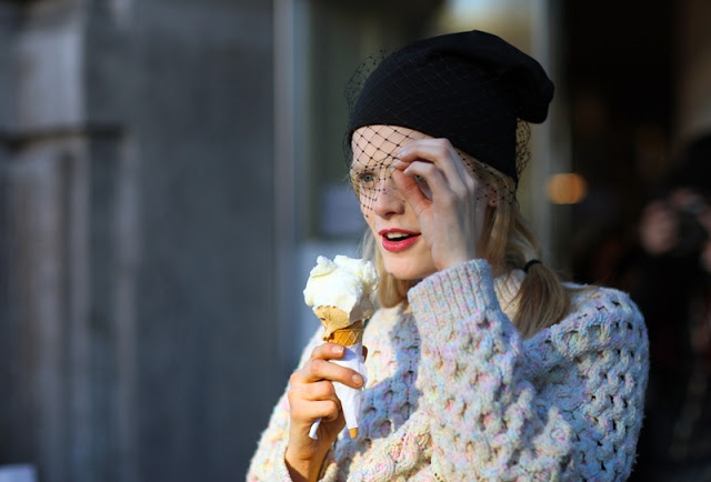 J'adore cette tendance. On peut mettre un costume cintré à l'instar de Anna Dello Russo et immédiatement apparaître avec ce couvre chef so 2015 avec une ADN fashion et un brin caricaturale qui plaît.
