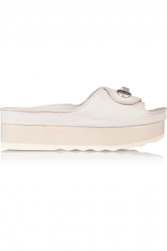 Visiblement séduits par le concept de "l'ugly shoe", les designers n'hésitent pas cette saison à piocher au sein du lexique normcore de quoi chausser leurs clientes. Aussi confortable que ringarde, la claquette de piscine leur est ainsi apparue comme la pièce idéale pour allier hype et mode. Et si certains se proposent de lui apporter une valeur ajoutée en la repensant légèrement et ainsi justifier un prix "créateur" (voir ici, ici et là), d'autres se contentent de décliner à leurs couleurs la plus basique des claquettes (voir ici et là). Dans ce contexte, mieux vaudra mixer cette tendance aux réminiscences seventies, opter pour un modèle carbone ou encore s'amuser à forcer le trait en chaussant ce genre de claquettes.