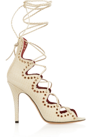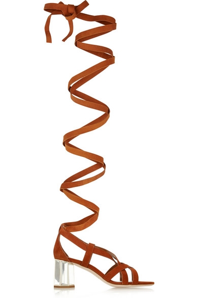 Tour à tour monacales ou ultra sensuelles, les lanières font parties des artifices de prédilection de la saison. Oui mais voilà, très connotées et peu faciles à vivre, ces dernières peuvent vite se révéler too much ou peu flatteuses. On évitera donc les modèles alliant talons aiguilles et fins liens de cuir enserrant la jambe (Gianvito Rossi), ainsi que les sandales ultra plates bien trop premier degré (Valentino, Miu Miu). Et si l'on délaissera les lanières montant juste en dessous du genou au profit de modèles s'arrêtant au bas du mollet (Isabel Marant, Aquazzura), on essaiera également de trouver le juste milieu entre semelles ultra plates et talons vertigineux en optant soit pour des compensées sages et maîtrisées, soit pour des talons praticables, soit pour des modèles ne se prenant pas au sérieux.