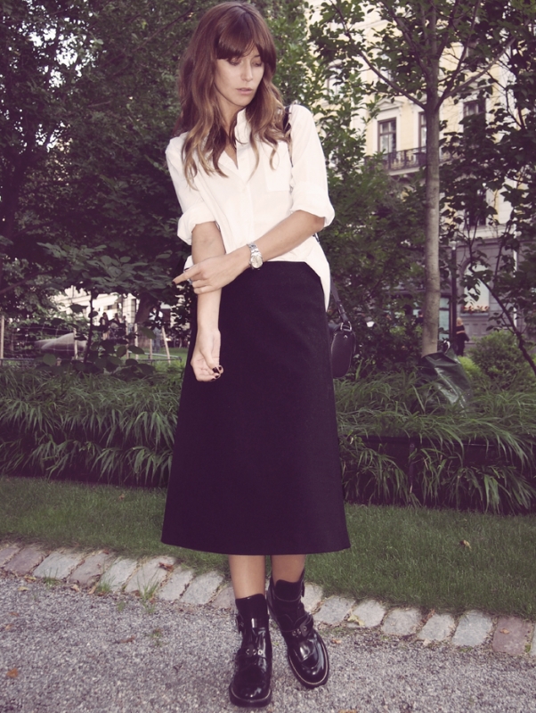 Twister une austère jupe ligne A au contact d'une massive paire de boots (voir ici). Rehausser un simple tee-shirt noir par le biais d'un pendentif esprit "Point Break" (voir ici). Porter une veste de blazer noire au revers italien, afin de booster le trio jean clair/tee-shirt noir chiné/montre masculine (voir ici). Faire confiance aux volumes oversize pour doper son allure (voir ici). Passer du temps dans les friperies, afin de garnir sa penderie de parfaites petites robes blanches (voir ici). Réchauffer ses robes fleuries au contact d'un perfecto noir (voir ici). Faire blouser ses chemises dans des jeans droits taille haute (voir ici et là).