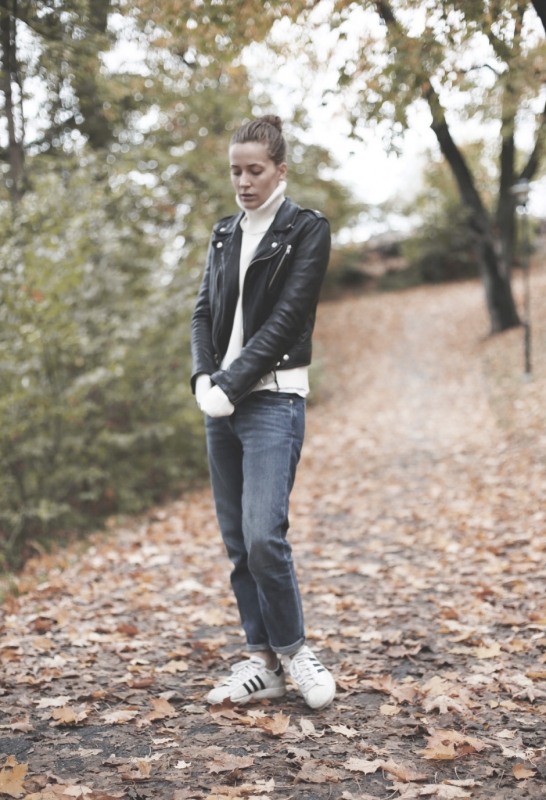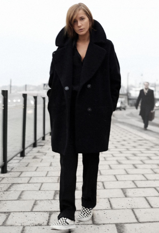 Emporter pour ses vacances au soleil une longue robe noire dos nu (ou blanche), et la porter aussi bien en journée qu'en soirée. Dénicher une salopette ajustée sur les hanches et droite sur la jambe (voir ici). Porter ses chemises blanches glissées dans des jeans un peu larges (voir ici et là). Mixer blazer un peu grand et gros pull de montagne (voir ici). Oser le pantalon large en velours côtelé (voir ici). Troquer sa parka pour un perfecto en cuir à l'occasion d'une ballade au parc ou en forêt (voir ici). Faire du pantalon à pinces masculin 7/8 son pantalon de combat (Emma le porte lors des shootings lorsqu'elle doit être ultra à l'aise dans ses vêtements).