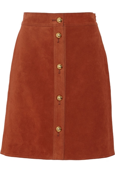De son côté, la jupe fauve - voir ici et là - pourra s'associer aux ensembles carbone sous-pull/ankle boots, converses montantes/tee-shirt loose col V/collier doré, mais aussi sandales à talons ronds/caraco. On pensera également à la conjuguer en mode sportswear à coup de sweat bleu marine et de New Balance de la même teinte, ou de chemise blanche et de paire de baskets immaculées.