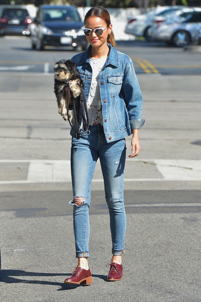 Des versions pointues dont se sont malheureusement peu inspirées les stars, leur préférant des looks sages dénués de tout twist créateur. En se contentant d'associer slim destroy et blouson en jean, Jamie Chung affiche en effet une allure de post-ado peu réjouissante. Et si Emily Blunt s'en sort légèrement mieux en optant pour un ensemble mêlant deux teintes de jean différentes, slim déchiré et absence d'accessoirisation n'en pénalisent pas moins son look.
