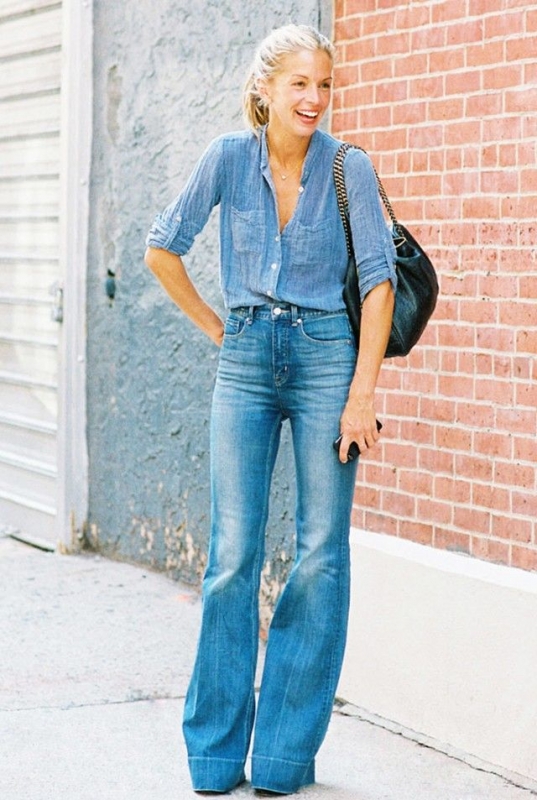 Peu facile à manier sous ses abords de tendance facile à vivre, le total look denim aura dans la pratique plus de chance de fonctionner : s'il est composé de pièces de belle facture et non destroy (voir ici) si l'on porte la pièce la plus foncée en bas et la plus claire en haut (voir ici et là) si les teintes de jean sont vraiment identiques (voir ici et là) s'il est accessoirisé de fins bijoux dorés (voir ici et là)