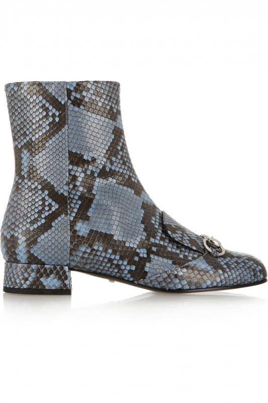 Lorsqu'en 2011, Miuccia Prada décide de chausser ses modèles de bottes Mary Jane en python, rares sont celles qui lui emboîtent le pas : trop conceptuelles et parées de teintes artificielles, lesdites bottes n'inspireront pas de tendance forte. Il faudra ainsi attendre les collections printemps/été 2015 - et plus particulièrement le défilé Gucci - pour voir le python se hisser au firmament des imprimés "must have".