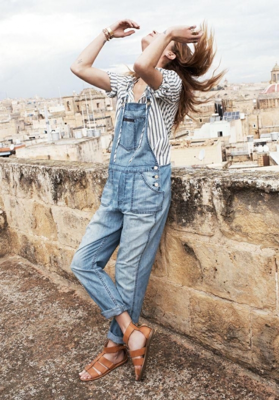 De son côté, l'ample salopette chinée dans les friperies sera à réserver aux bords de plages. On pourra alors la conjuguer en mode californien en la roulottant sur la cheville et en la portant avec un haut de bikini et une paire de baskets blanches. Découpée en short, elle se portera avec un ample tee-shirt rayé, une paire de wayfarers noires et un sac en paille tressée.