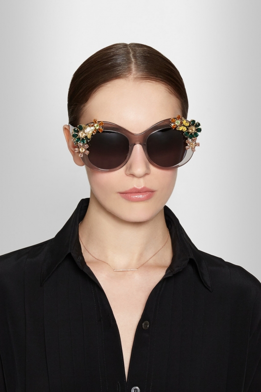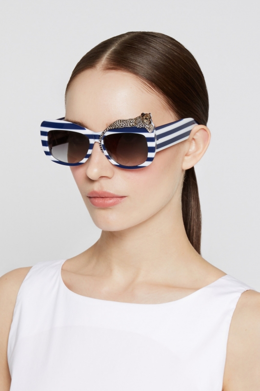 Des plus baroques aux plus contemporaines, nombreuses sont les lunettes de saison à opter pour une sophistication étudiée via des détails fantaisies accentuant le dessin des verres. C'est ainsi que chez Miu Miu et Dolce & Gabbana, les coins externes supérieurs des lunettes se voient particulièrement travaillés. De son côté, Anna-Karin Karlsson n'hésite pas à forcer le trait en posant un léopard affalé sur le côté gauche de ses montures, provoquant ainsi un "haussement de sourcil" artificiel...