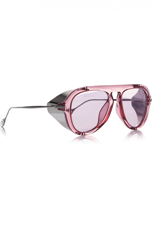 Intemporel, le modèle "aviateur" a particulièrement inspiré la gent créative, qui n'hésite pas à livrer sa propre version du classique modèle Ray Ban, lorsqu'elle ne décide pas de modifier totalement son ADN unisexe. Pourvues d'une monture en acétate rosé et d'oeillères métallisées, les lunettes aviateurs Gucci se transforment ainsi en accessoires girly/rétro, tandis que les créations Prada jouent les mutantes en mixant fines tiges dorées et épaisses montures opaques. De leur côté, les "Maskaviator" de chez Valentino brouillent les pistes avec leurs verres "aviator" décalés de leur axe traditionnel et sertis d'une monture en acétate. Idées de paires accessibles : voir ici et .