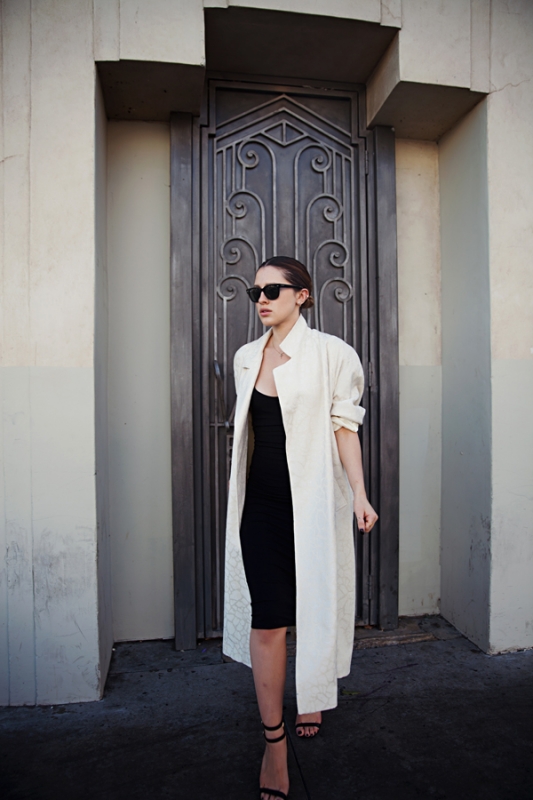 Détourner une robe kimono en longue veste (voir ici et là). À porter sur un ensemble moulant et ultra sobre. Apaiser le duo mini robe moulante/sandales hautes perchées au contact d'un maxi blazer ou d'un long manteau d'été. Après la plage, traiter son maillot de bain comme une pièce prêt-à-porter à part entière en le portant avec des pièces habillées (voir ici et là). Transformer en robe un long gilet porté croisé et ceinturé taille haute par une très large ceinture (voir ici). Télescoper sweat gris et bijoux dorés (voir ici). Traiter la jupe ample midi en mode minimaliste en la mariant au duo fines sandales à talons/top cropped moulant à très fines bretelles (voir ici). Twister le duo monochrome slim brut/chemise ample bleu marine à manches courtes au contact d'escarpins argentés (voir ici). Porter sa veste en jean avec le duo tee-shirt loose noué sur le côté/jupe crayon en jersey (voir ici).