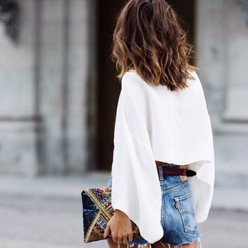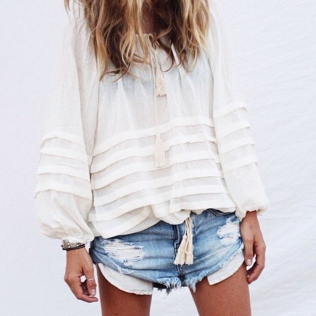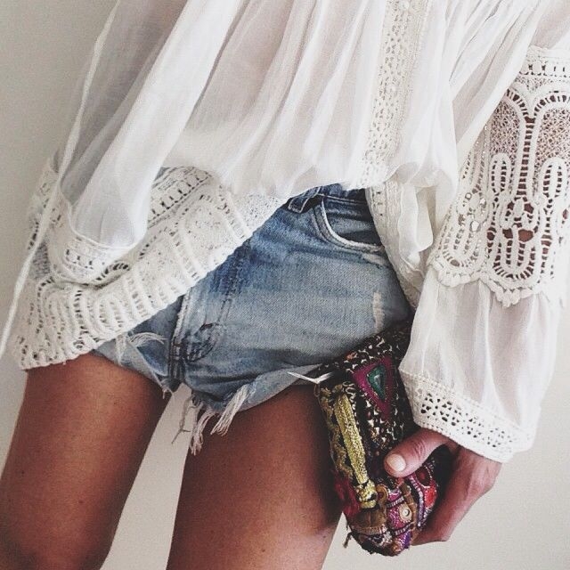 On n'oubliera enfin pas d'user et d'abuser du duo short en jean/haut romantique, qui allie avec à propos la "casualness" du denim à l'aura hippisante de ce genre de top (voir ici et là).